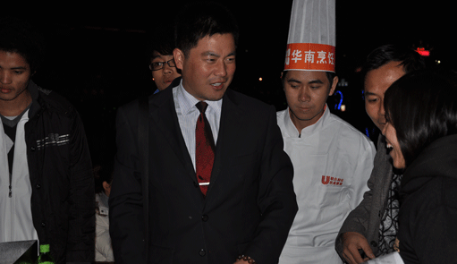 我校领导朱伟带领老师和学生参加这次大型跨年宣传推广活动的飞饼绝活表演。通过这次表演活动,体现我校教师良好素质和精神风貌,让广大市民对我校厨师专业“厨师--热门行业,高薪职业,永不失业”有了更加深刻、生动的认识。