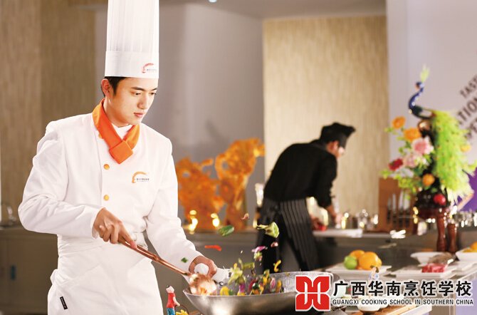 广西华南烹饪学校是经广西壮族自治区劳动和社会保障局批准的大型烹饪专业学校,是培养国家中高级烹调师、技师和烹饪管理人才的国际餐饮教育基地。学校隶属于著名的长安开元教育集团,拥有实力雄厚的全国性教育网络和资源。学校师资力量雄厚,拥有一支以素质高、技术强、教学精而著称的高级烹调师、高级技师为骨干的专业教师队伍,教学质量始终如一,名列全国前茅。学校教学设施先进,拥有全新不锈钢油气灶台;建有国内一流水准的切配、热菜、冷拼、雕刻、面点等各类实习大厅、现代化实训工厂、现代化模拟厨房和标本展示厅50多间。独创的互动式“模拟餐厅”教学,开创了烹饪教育的先河,从根本上保证了学校的教学质量。学校管理严格,采用先进的“二元”管理模式。在教学上实施“技能+素质”一体化教育,一方面注重学生技能的培养,为学生提供更多的学习实践的机会;另一方面重视学生综合素质教育,定期开展丰富多彩的校园文化活动,培养学生成为符合社会需要的复合型、专业型人才。广西华南烹饪学校最大程度上解决军人择业面窄的尴尬。系统先进的教学方法及紧缺的专业人才需求、使军人转业后,在一年左右的时间,便可成为职场的抢手人才,企业的中流砥柱。