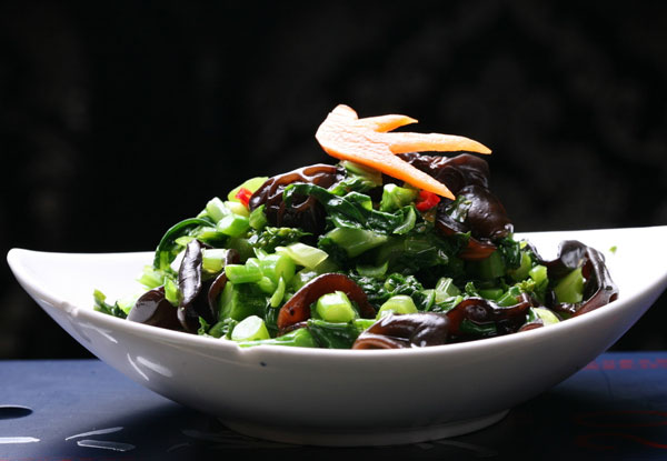 菠菜炒木耳。