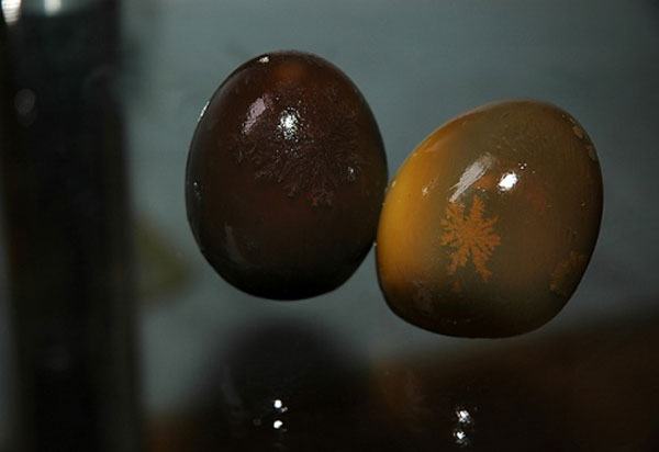 两个剥了壳的皮蛋。