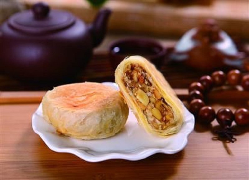 菌菇素月饼属于苏式月饼,苏式月饼以口味偏甜为主,但是这款月饼却是咸的。制作馅料首先得将新鲜猴头菇和晒干后的香菇切碎进行搅拌、调味制成馅料,手工包制烘烤。菌菇特有的香味与面皮散发的酥香相辅相成,既能在传统口味的基础上给大家带来新鲜感,同时也不违背净素月饼的健康宗旨。