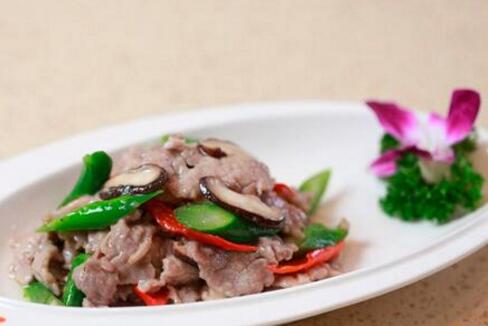 新鲜香菇洗净去蒂后切片姜切片、肉切片。青红椒切圈锅坐油,下姜片爆香,青红椒炒出香味,入香菇片翻炒至渐渐有水份析出,再加入肉片,淋酱油、生抽同炒炒至肉片熟透,快手加盐、鸡精、葱花,翻匀即可出锅
