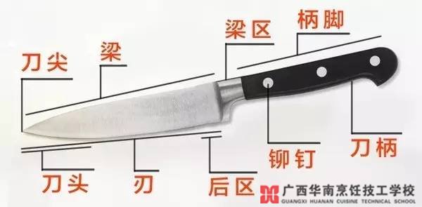 梁区:刀身与刀柄之间是厨刀的梁区,在大号的厨师刀上,梁区起到保护手的作用。