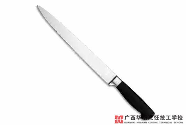 这是一种给鲜肉剔骨、去皮最理想的工具,如牛腿和整条鱼。狭窄、富有弹性的刀身十分适合这项工作。刀身狭窄,刀头能被充分控制,甚至可以使之倾斜180°,深入肉的内部割断筋络。沿着骨头的弧度与骨头平行滑动刀具,并不会因切到骨头而使得刀锋变钝。