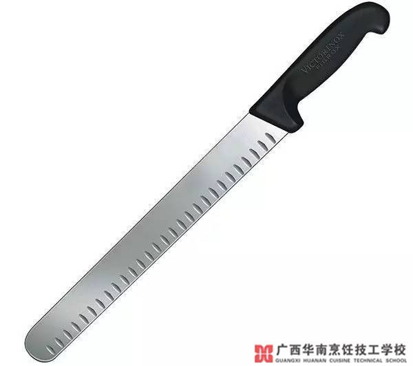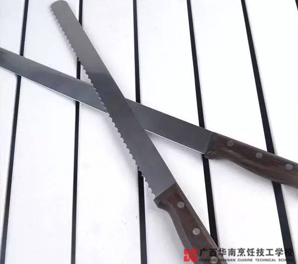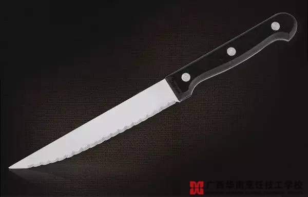 别名叫“金汤力”刀,这种刀可以避免其他的刀具受到严重的磨损。刀上的锯齿可以很轻松地切开坚硬的皮,也能安全地切开圆形的食材,不使它滚动。比如粗大的香肠和番茄、柠檬等蔬果。