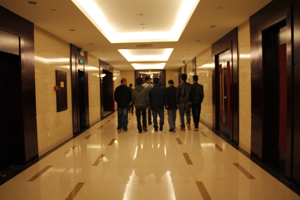 学子们进入酒店内