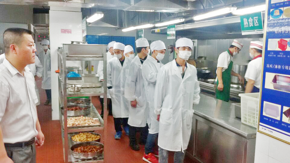 在中广核服务集团有限公司防城港分公司负责人的带领下同学们先后参观了企业后厨大厅、企业后厨、并了解企业后厨工作的流程和环境。随后,同学们还参观了企业后厨工作人员的生活区、就餐区、工作区,提前置身到企业工作当中。参观过程中带队企业负责人把同学们在校学习技能和企业后厨的工作环境、岗位流程、职业培训等联系在一起,拓宽了同学们知识视野,增进了实践体验。
