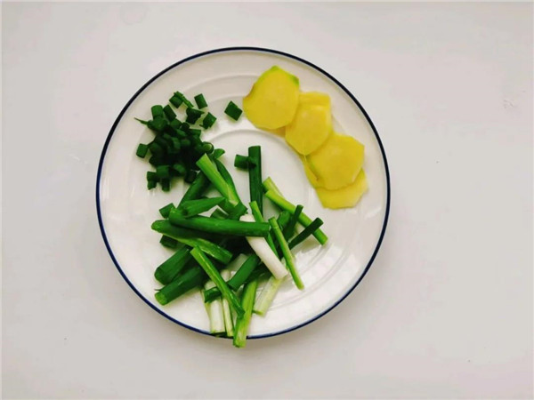 6、另起锅倒油,放入葱段,姜片翻炒出香味。