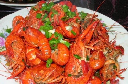 (3)锅烧热,放油,油热后放入葱姜丝,炒香,放入虾,加黄酒。翻炒几下加入调味汁,爆炒,即成。