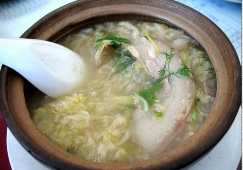2.砂锅白肉比白煮肉有滋味得多,最重要的就是因为加入了酸菜,不但改善了口味,更改善了口感,因为酸菜的酸味很好地中和了五花肉的油腻感。