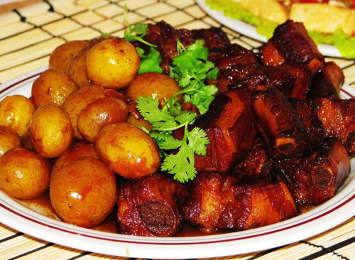 调料:酱油3勺(45ml)、白糖15克、盐5克、葱1段、姜4片、香叶3片、桂皮1根、八角2个、花椒10粒;