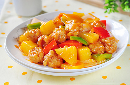 猪肉(最好是里脊肉)、菠萝块、青、红椒各半个。