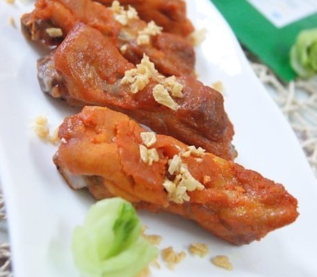 12. 打开玻璃纸,撒上金蒜蓉即可开吃。