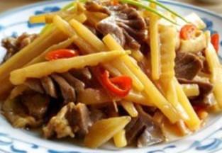 酸笋炒鸡胗做法: