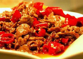 牛肉,豆瓣酱、辣椒、酱油、精盐、料酒、味精、白糖、花生油、葱段、姜片(各适量)