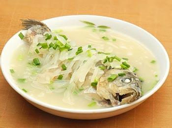 1、新鲜鲫鱼清洗干净,去掉鱼肚子里面的黑膜,在鱼身两边各划两刀,萝卜切丝备用。