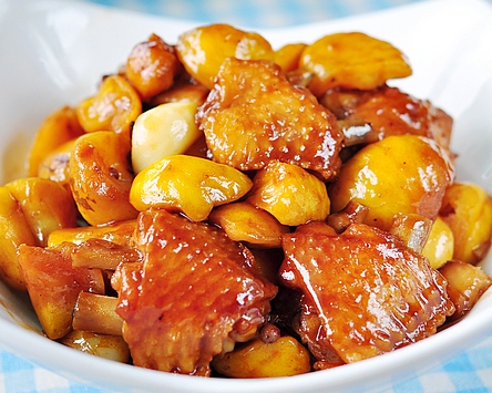 鸡翅、板栗、花椒、八角、姜、蒜、盐、老抽、生抽、番茄酱、冰糖、鸡精