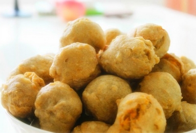 4、油烧至5成热,关小火,把芋泥团成丸子下锅炸,炸至金黄色即可起锅。