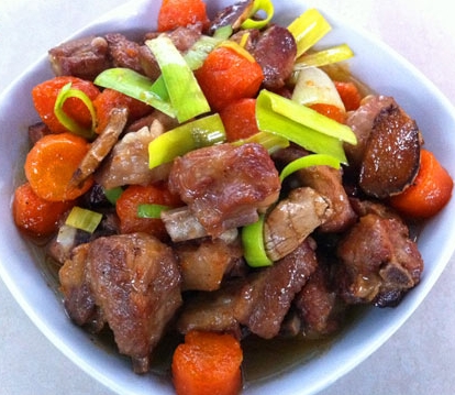 排骨、胡萝卜、姜、大葱、盐、料酒、酱油、糖