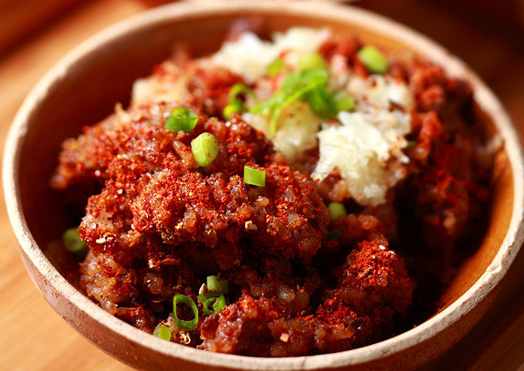牛肉、大米、盐、酱油、姜、蒜、花椒、葱、豆瓣酱、腐乳汁、红糖、料酒、五香粉、香菜、花肠粉、辣椒粉
