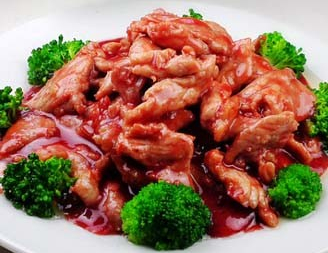 6、汤汁粘稠后加入过油的肉片;