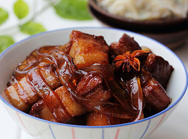 五花肉、葱姜、八角、绿豆粉皮、白酒、老抽、盐、冰糖等。