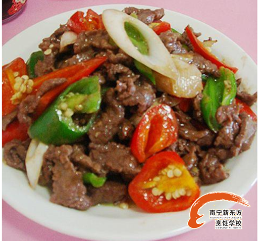 南宁新东方烹饪学校今日推荐菜谱:三椒炒牛肉