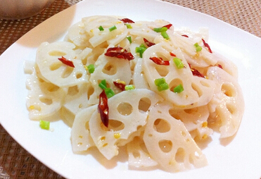 材料:莲藕一节,小葱,辣椒,姜,蒜。