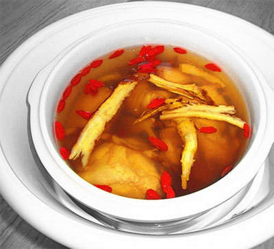 主料:母鸡 (400g)、当归 (12g)、姜 (5g)、枸杞 (少许)、葱 (少许)