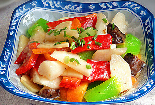 主料:山药80克、胡萝卜60克、莴笋80克、冬笋100克