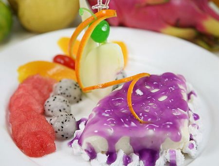 材料:百香果300克,火龙果300克,甜菊土三七2克,麦芽糖300克,冰糖50克。