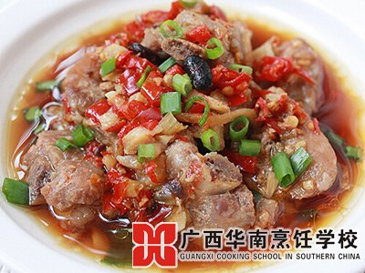原料:排骨200克,剁辣椒50克,豆豉25克