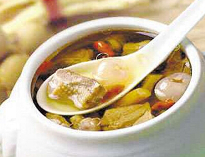配料:田七、枸杞、干香菇、生姜、葱(各适量)