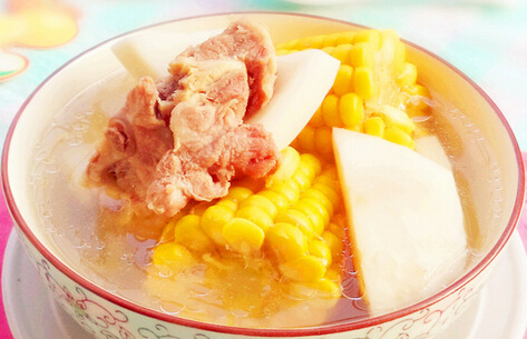6.大火煲开10分钟,转小火煲90分钟,放入淮山块继续煲20分钟,调入适量的盐即可。