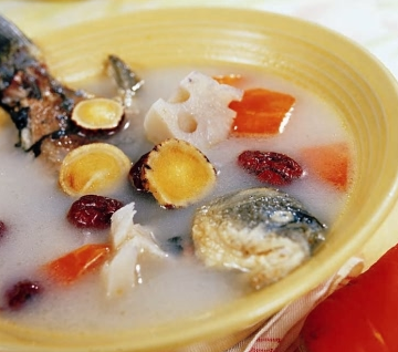 1.胡萝卜半根切块,藕100克切块,黄芪10克,鲫鱼1条,红枣6颗。