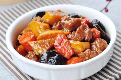 原料:羊腩700g、冬笋1根、冬菇8个、油适量、胡萝卜1根、蒜1瓣、葱1段、姜1块、料酒2汤匙、蚝油1汤匙、冰糖适量、盐1茶匙、酱油适量。