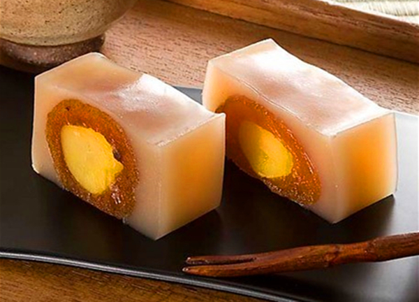 6、等羊羹凝固后,将其从模具中取出切成小块即可。