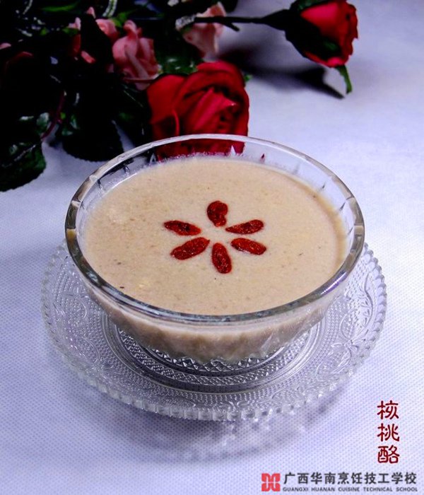 原料:核桃仁250克、奶粉80克、无核蜜枣100克、白糖200克、清水1000克、湿淀粉适量。