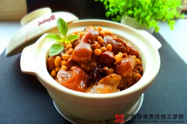 9、这时才把事先泡好的黄豆加入,继续焖40分钟。