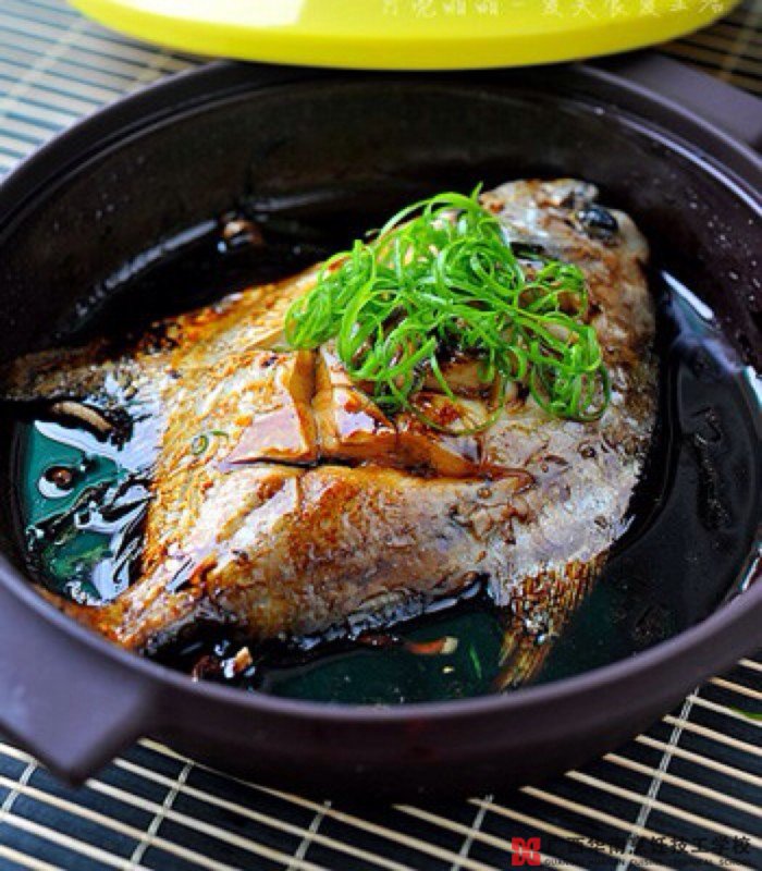 材料:鲳鱼一条(大约180G)料酒、葱、姜、生抽、老抽、