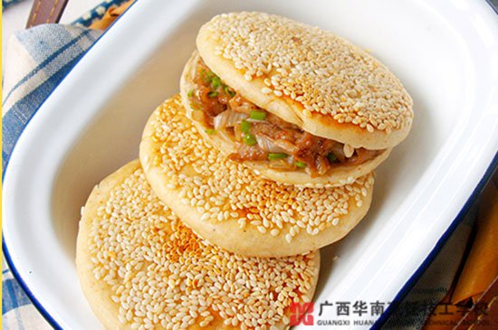 1.将制作烧饼的面粉、干酵母、盐混合均匀,加入水,揉成光滑的面团,醒发30分钟。