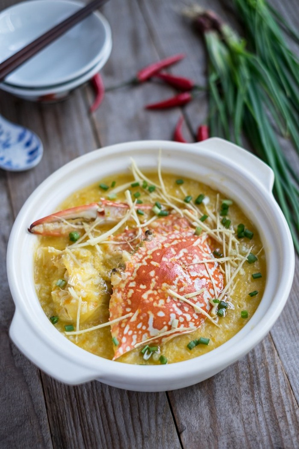 食材:海蟹1-2只 白粥 葱姜适量 盐适量 鸡精适量 料酒适量 胡椒粉适量