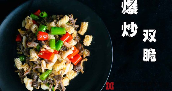 爆炒双脆是一道传统的闽菜,以海蜇皮和猪腰为主料,口感脆爽,造型美观,是福州宴席上的佳肴,也是一道可口的家常菜。在做法上讲究刀工和火候,切猪腰时下刀要迅速而富有节奏,成菜才会既鲜脆又美观。