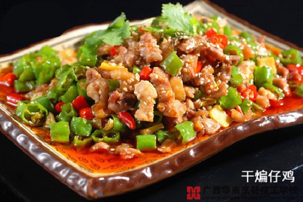 “干煸”又称煸炒或干炒,是家常菜的一个“技法”。是一种较短时间加热成菜的方法,原料经刀工处理后,投入小油量的锅中,中火热油不断翻炒,原料见油不见水汁时,加调味料和辅料继续煸炒,至原料干香滋润而成菜的烹调方法。好厨艺创造好生活,学厨师就到广西华南烹饪技工学校。