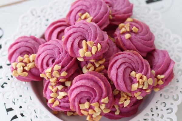 如今人们的生活条件好了,饮食中的粗粮占比越来越少。其实像红薯紫薯这种粗粮,不但能增强饱腹感,促进肠胃蠕动,有助于瘦身减肥,其中的天然花青素还有抗衰老的作用。今天这款紫薯花生曲奇,香酥可口,颜色漂亮,无人工色素和添加剂,一起看看做法吧。