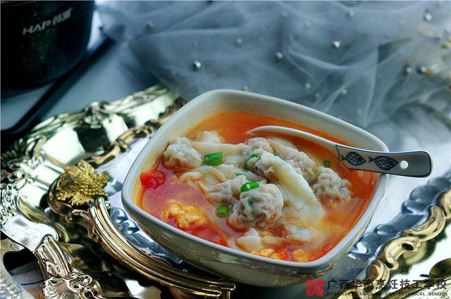 只要说起馄饨,马上就会觉得一阵诱人的香味扑鼻而来,那香味是浓烈的、细腻的,透着一股股农家气息,使人食欲大增,满口生津。用小汤匙轻轻地搅一搅,碗里的馄饨立马活跃起来,一只只打着旋儿,在碗里转圈,互相碰撞,像一只只戏水的小鸭子,十分可爱。今天广西华南烹饪技工学校教大家做一道鸡蛋番茄馄饨,喜欢吃馄饨的就赶快来学一下吧!