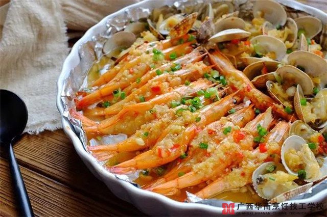 蒜蓉金针菇烤花蛤虾的做法,你学会了吗?如果你喜欢美食,想学烹饪的话,广西华南烹饪技工学校欢迎您随时前来咨询哟~~