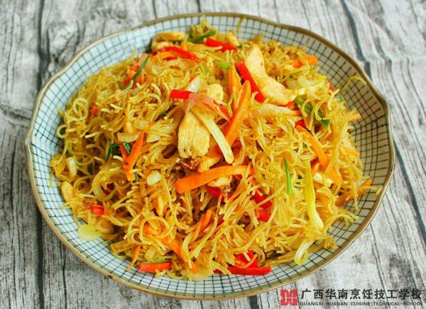 今天,广西华南烹饪技工学校老师为大家带来一道星洲炒米粉的做法,快去学起来吧!