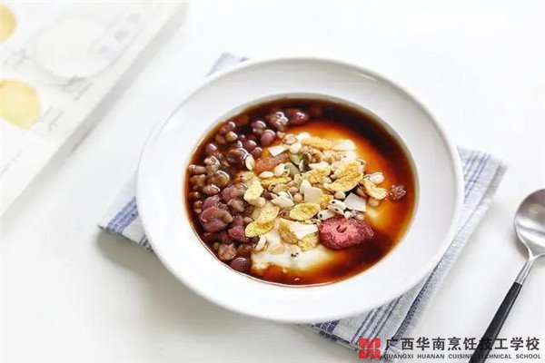 食材:纯牛奶200克、木薯粉20克、细砂糖30克、绿豆25克、红豆25克、水160克、红糖10克、开水80克、水果麦片适量。