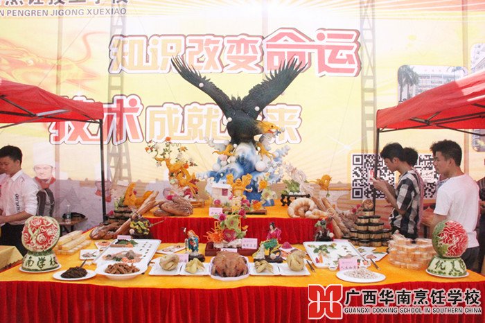 6月30日,广西华南烹饪学校内142班毕业考试正在进行,本次参加考试的是142班的同学们,通过这次考试来展现自己的学习成果 评比现场,还有同学在紧张的执勤着 同学们的作品,每一处都展现着同学们学习水平的高低,令
